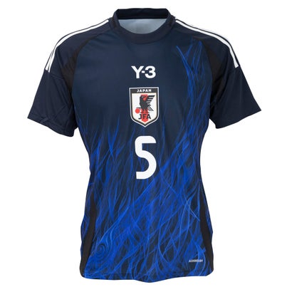 日本代表チームが一つの炎になってうねりを上げて燃え上がる。チームのホームカラーのブルーをベースに、日本の力強さを映し出すかのような、うねりを上げて燃えるハンドペイントの青い炎のグラフィックをあしらった、日本代表のレプリカジャージー。優れた吸湿性を発揮するAEROREADYテクノロジーを採用した、サポーターが快適に応援できるようにデザインされた、Y-3とのコラボレーションアイテム。フェデレーションキットでは初となるY-3ロゴとサッカー日本代表エンブレムが胸に誇らしくあしらわれた、新しいデザイン。この製品にはリサイクル素材を100%使用。製造された製品の素材をリユースすることは、ゴミの量、限りある資源への依存、そしてアディダス製品のフットプリントを減らすことにつながる。