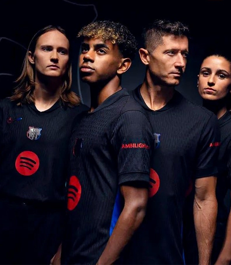 The Barcelona Jersey 2024-25 home is a classic design, complementing Catalan club's signature black and blue and red stripes. The inner collar features the Barcelona 125th anniversary emblem in blue and garnet, with the Catalan flag on the reverse. Barcelona's history of using the black Barcelona jersey dates back to the 2011/12 season when they debuted it as their third strip. That year, under Pep Guardiola, the team won the Copa del Rey and Spanish Super Cup, so it seems that the black Barcelona camisetas futbol are also very popular and significant. Barcelona wore this new Barcelona Jersey for the first time on 15 September in a home match against Catalan rivals Girona in Montilivi. Meanwhile, the club's crest will also be black, but will fade with the secondary colours of the Barcelona Jersey.